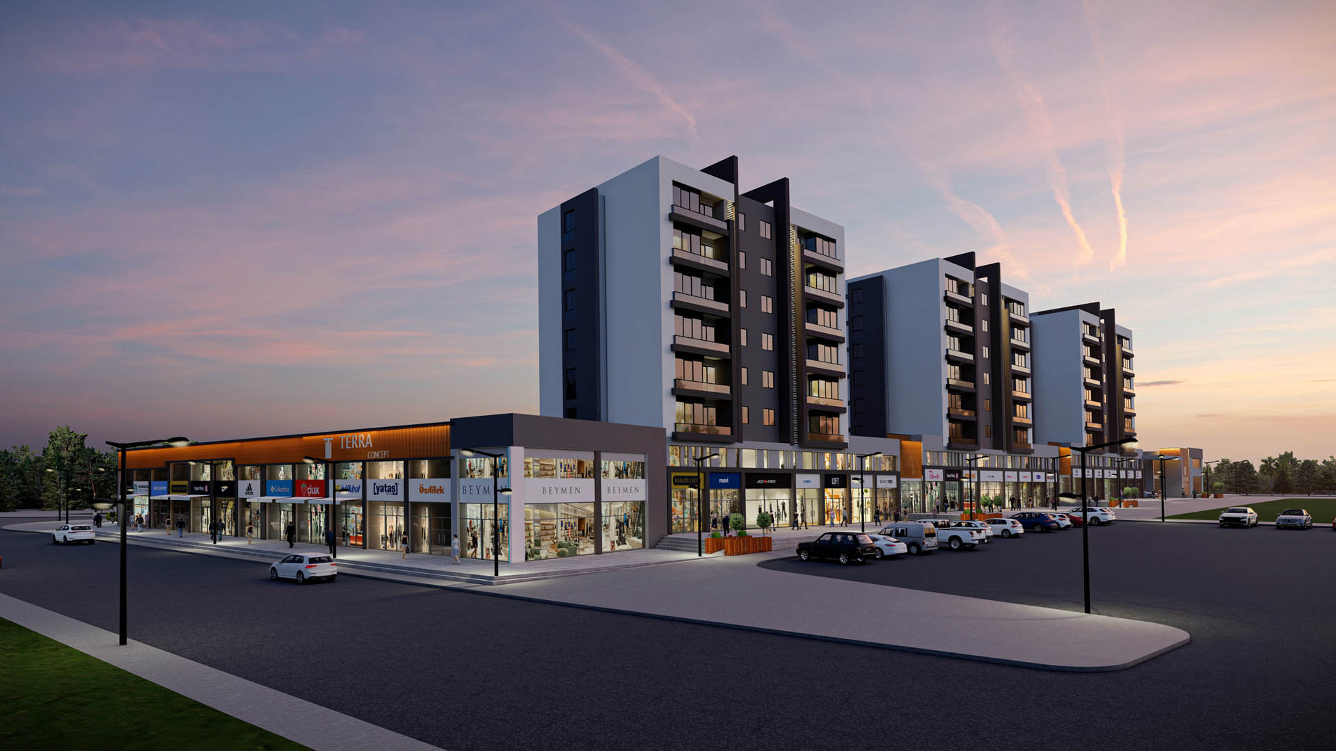 Terra Concept, 81 adet bağımsız ticari dükkan bölümleriyle AVM standartlarında iş yaşamını bölgeye kazandırmaktadır. Nüfus yoğunluğunun fazla olduğu bu bölgede; ekonomik olarak kazançlı yatırım fırsatları sunan Terra Concept, size hem bir yuva hem de işiniz için yeni fırsatlar sunmaktadır.